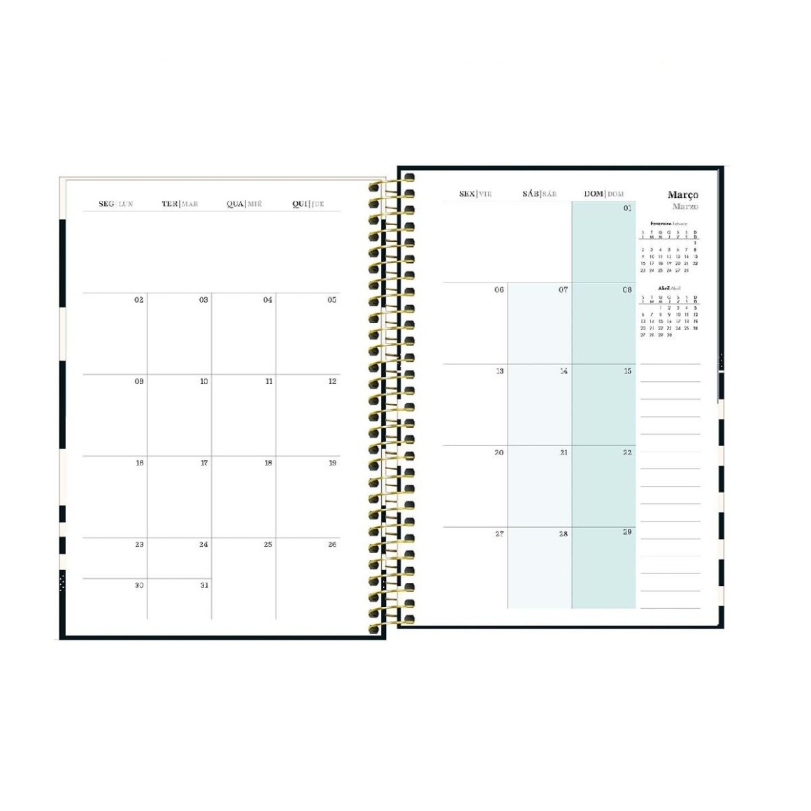 O Planner Espiral 13 x 18,8 cm West Village pode ser usado para organizar os compromissos do dia a dia, em casa, no trabalho e na escola.