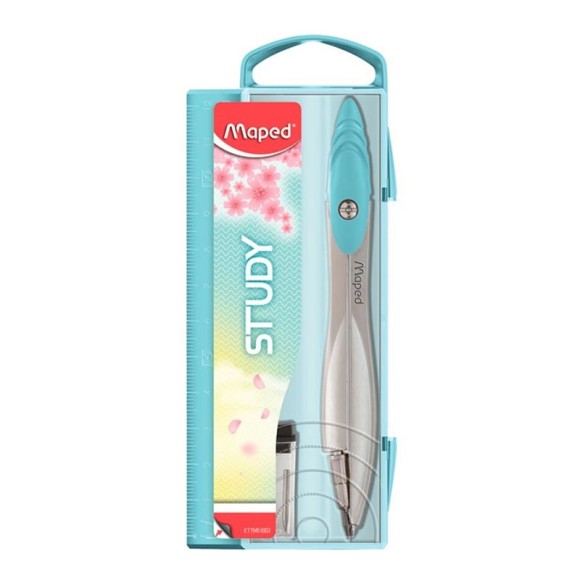 O durável Study compasso tem um acabamento atraente e uma cabeça ergonômica que o diferencia. Compacto e portátil, o Study é perfeito para alunos de todas as idades e possui pernas de metal para maior durabilidade. Estojo resistente e funcional, maior proteção e régua integrada na lateral.
