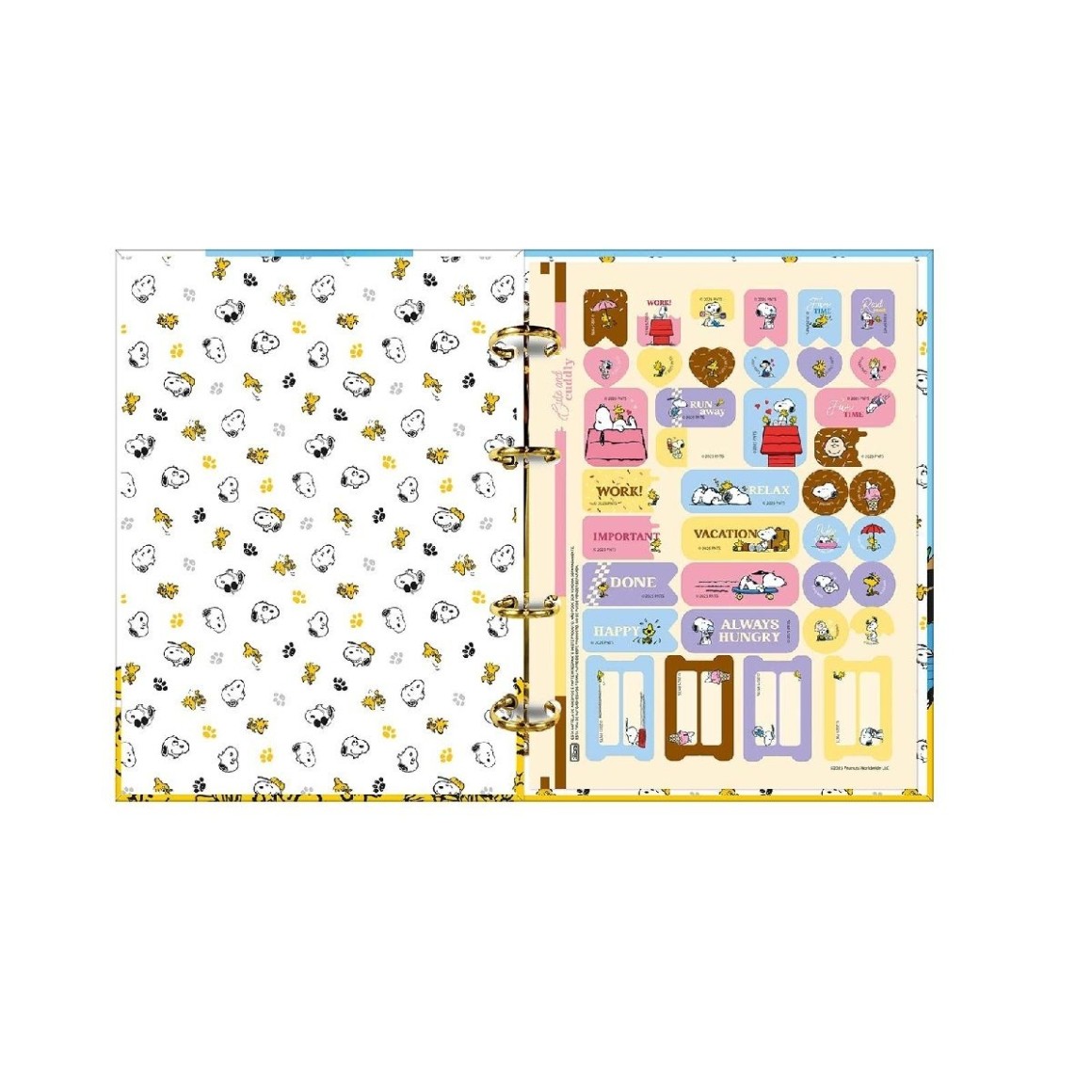 O Caderno Argolado Cartonado Colegial Snoopy 160 Folhas possui formato compacto, é leve e bastante funcional. Vem com capa dura com detalhe metalizado e parte interna decorada, divisórias, folha adesiva, folhas pautadas decoradas e bolsa plástica para guardar trabalhos e anotações.