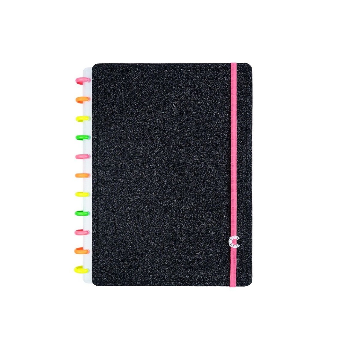 Um verdadeiro show de cores, brilho e glamour no Caderno Let’s Glitter Neon Black