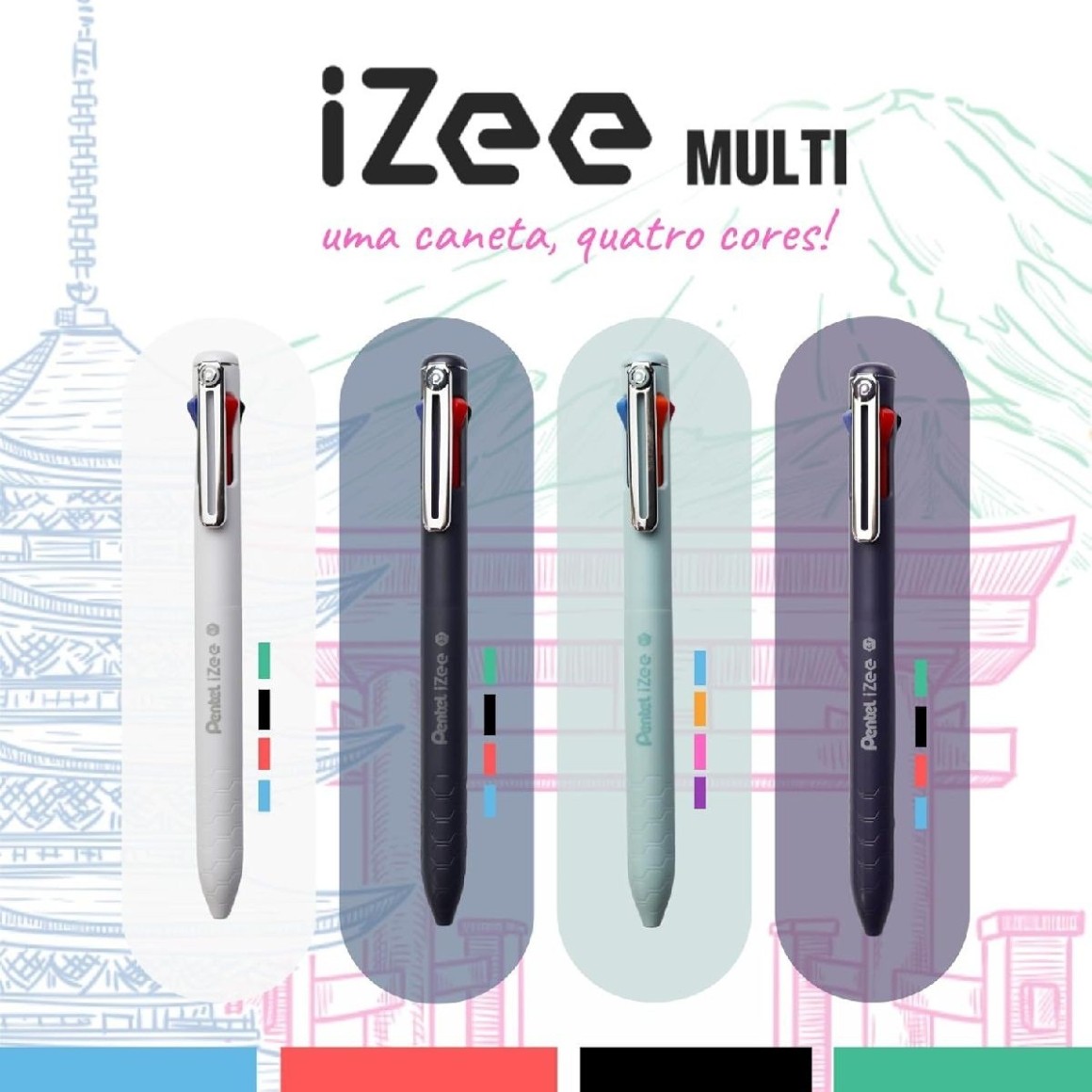 2. CANETA IZEE 4 CORES 1.0MM CORPO AZUL PENTEL