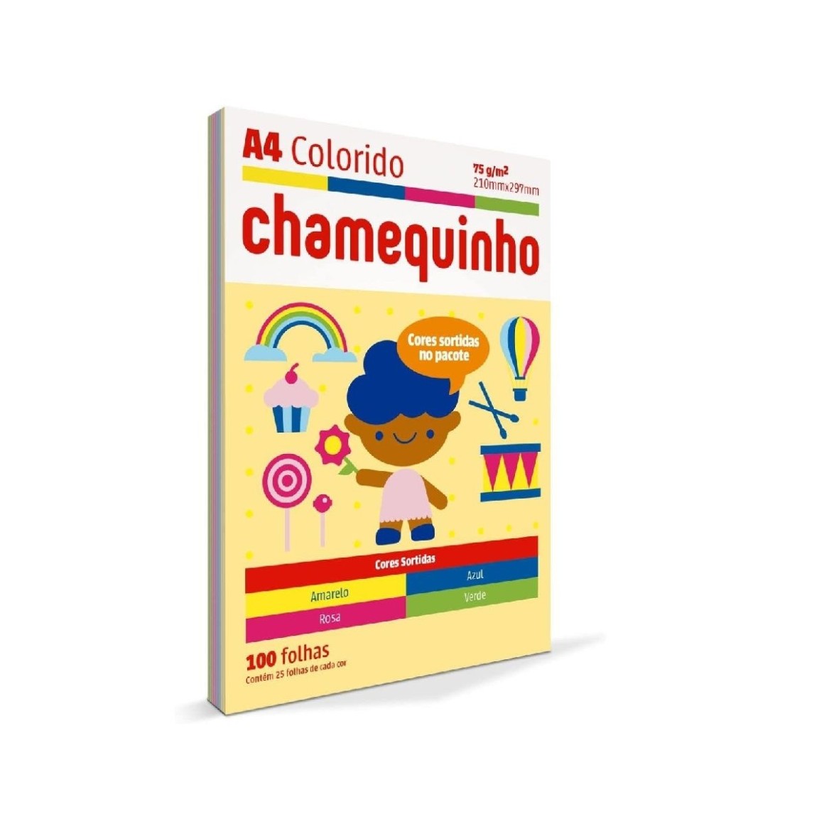 2. PAPEL SULFITE A4 COLORIDO 75G 4 CORES 100FLS CHAMEQUINHO