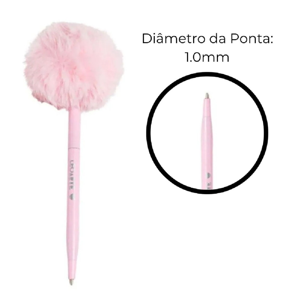CANETA CORPO METAL POM POM PINK VIBES LEOARTE