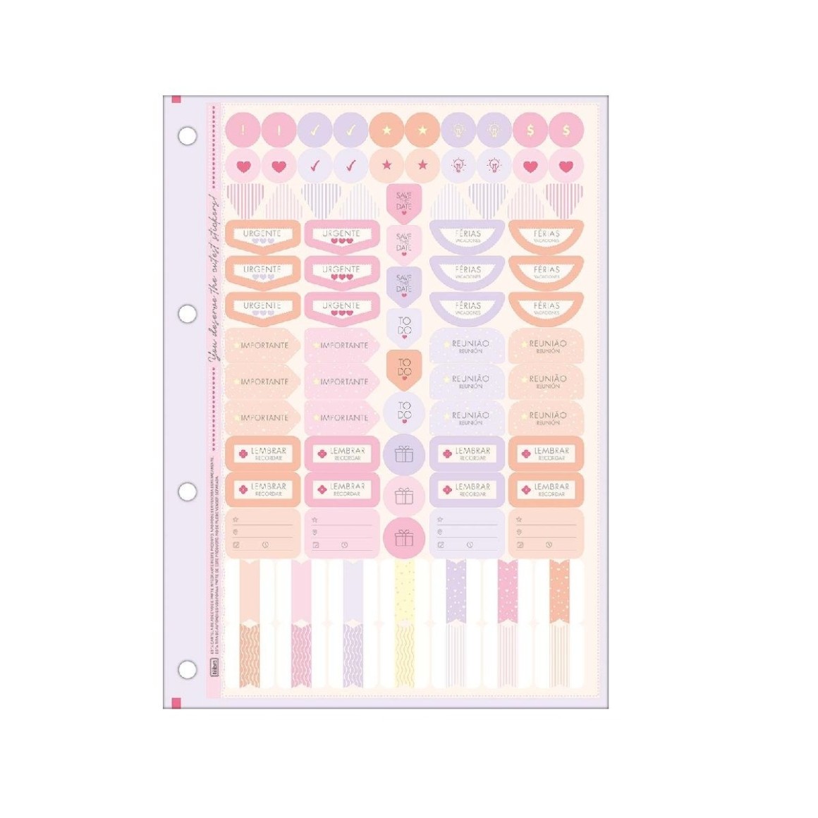 O Refil para Caderno Argolado Colegial Soho possui folha com adesivos funcionais e 80 folhas pautadas decoradas. Ideal para o dia a dia na escola ou na faculdade.