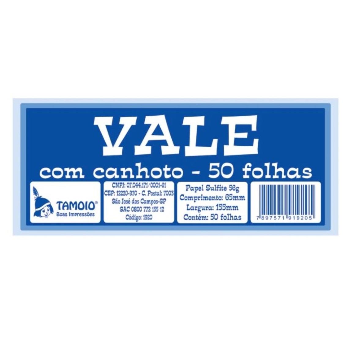 BLOCO DE VALE COM CANHOTO 50 FOLHAS TAMOIO