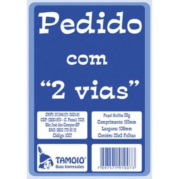 BLOCO TALÃO DE PEDIDO C/ 2 VIAS 25X2 FOLHAS 108X155MM TAMOIO