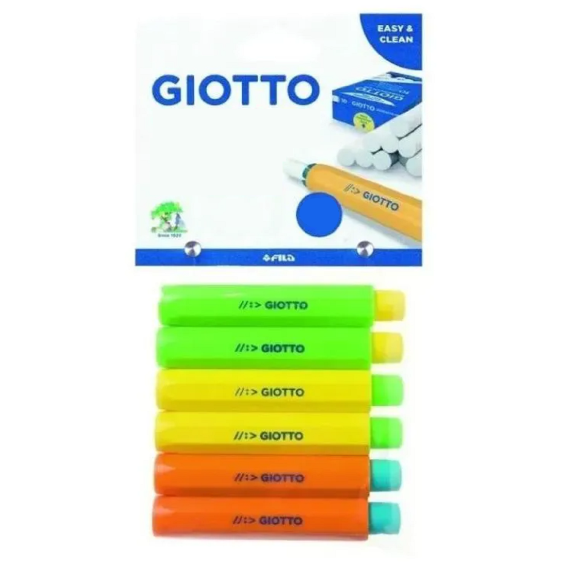 Os coloridos porta-giz Giotto são seguros e práticos: Mantêm as tuas mãos limpas, protegem as peles sensíveis de possíveis irritações e faz que a estrita e o desenho sejam ainda mais divertidos! São de plástico, leves e estão disponíveis em 3 cores diferentes.