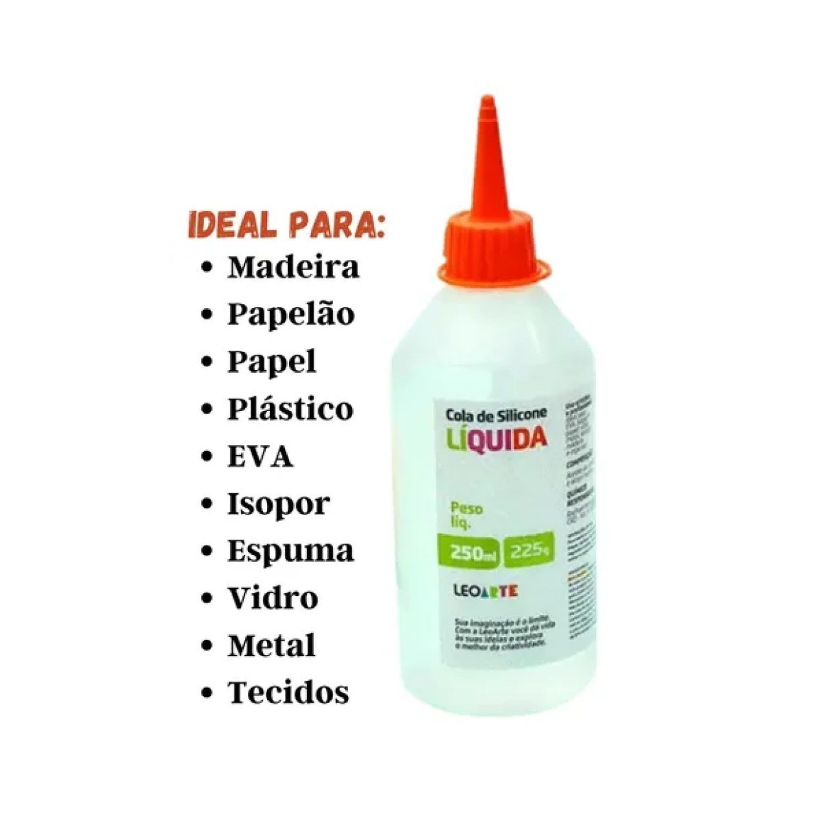 A Cola de Silicone é recomendada para trabalhos artísticos, especialmente para trabalhos em E.V.A., isopor*, papel, papelão, tecidos, esponjas, cortiças, madeiras, entre outros.