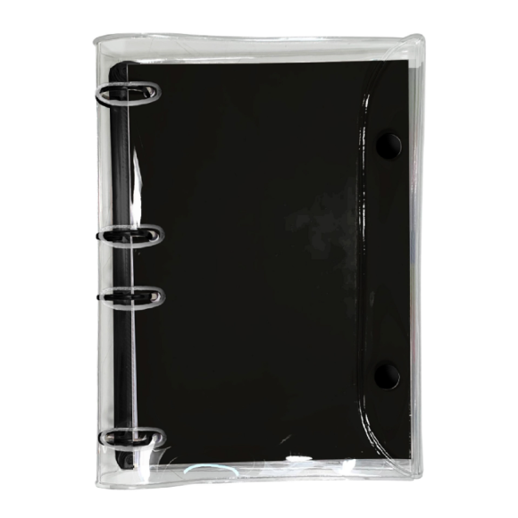 O Fichário Colegial PCV Cristal com Botão é um sucesso em vendas pela sua inovação, estilo e praticidade. É uma boa alternativa para quem quer o tamanho compacto para levar na bolsa. Contém ferragem fixa com 4 argolas e 192 folhas com gramatura de 56g.