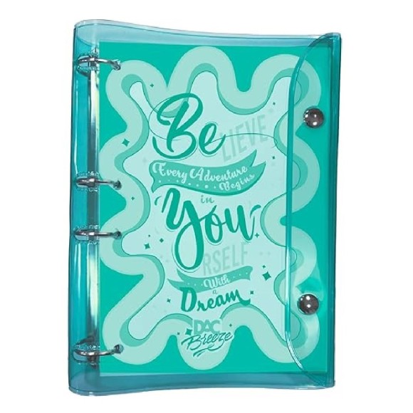 O Fichário Breeze é encantador e o item perfeito para ter foco. Ideal para estimular a organização dos estudos diários e alcançar as metas e objetivos sem perder a motivação. Cheio de versatilidade ao inserir ou retirar folhas, pois as argolas articuladas abrem, possibilitando esta ação. Útil e estiloso, foi feito para arrasar! Pronto para escola ou faculdade.A linha de material escolar DAC Breeze chegou para trazer a delicadeza das cores suaves que dispensam as preocupações e ajudam na concentração